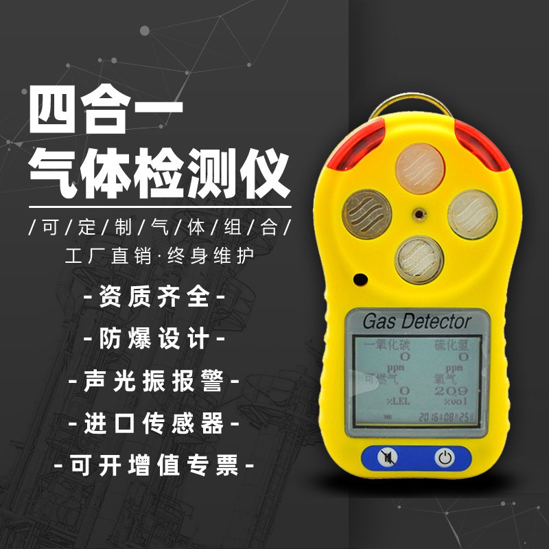 该仪器可根据客户需求定制二合一、三合一、或四合一,*多可同时显示4种气体数值,当现场某种待检气体的指标超出或低于所设置的标准时,仪器会自动进行声、光、振动报警,手动可以进行报警解除。适用于检测环境空气中气体的浓度,广泛使用于冶金、电厂、化工、矿井、隧道、坑道、地下管线等场所,有地预防事故的发生。是一种可以灵活配置的多种