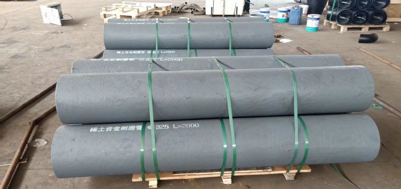 钢管内衬采用耐磨铸铁,该产品既具有高台金铸铁的耐磨、耐腐蚀特性(耐磨、耐蚀性较16Mn