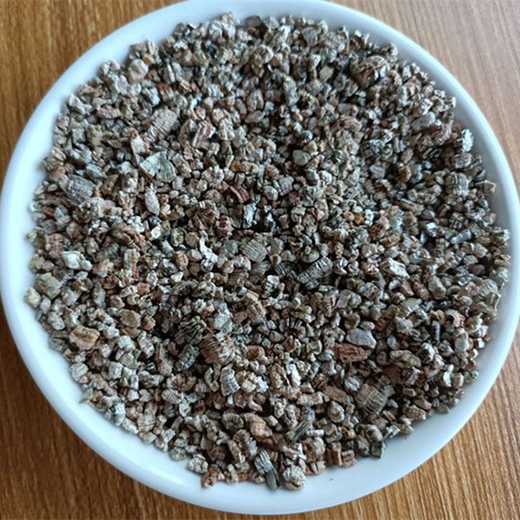 蛭石片经过高温焙烧后,其体积能迅速膨胀至数十倍,体积膨胀后的蛭石就叫膨胀蛭石,其是层状结构,层间含有结晶水,容重在50-200kg/m3,热导率小,是好的