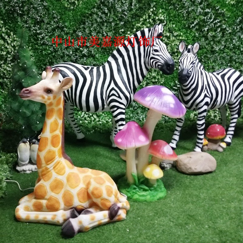 把这些滴胶的动物放在草坪与公园,道路边,广场.与实际的小树等植物对比使用,增加了亮丽光彩.