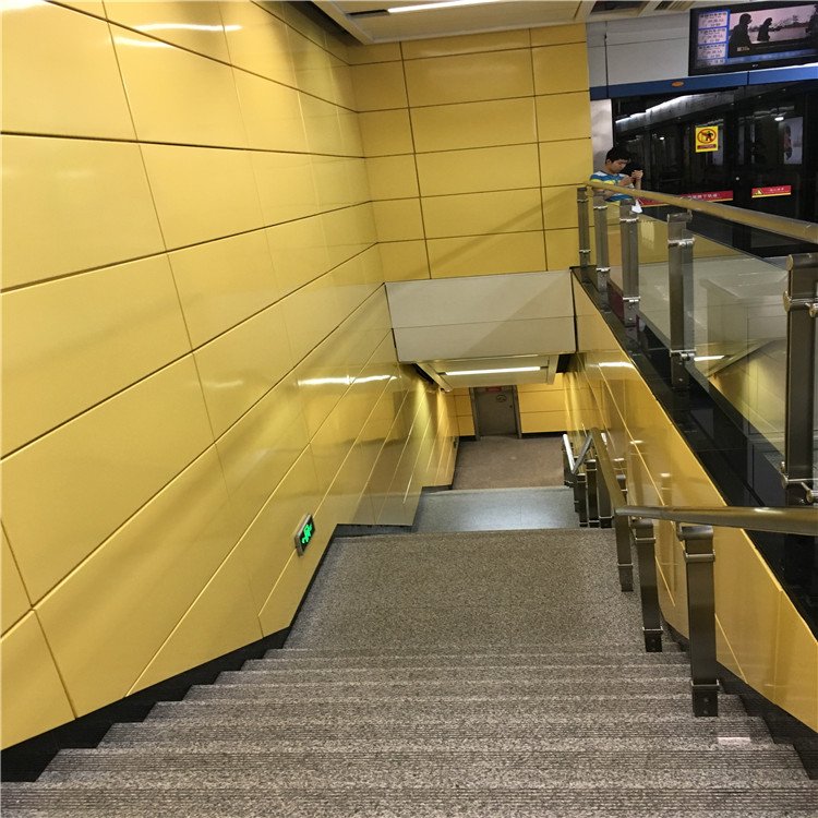 在地铁站、隧道墙面使用根据各个地方的环境气候选择基材厚度, 2.0mm、2.5mm、3.0mm、3.5mm、4.0mm、4.5mm、5.0mm 更多厚度详情咨询客服,板的见光面常规尺寸是,1200x2400mm,1220x2440mm,尺寸都可以按场地分布而定做,大板的背面每隔1.2米就附加一根加强筋,有注加强板面的立体效果保持装饰长久不变形。
