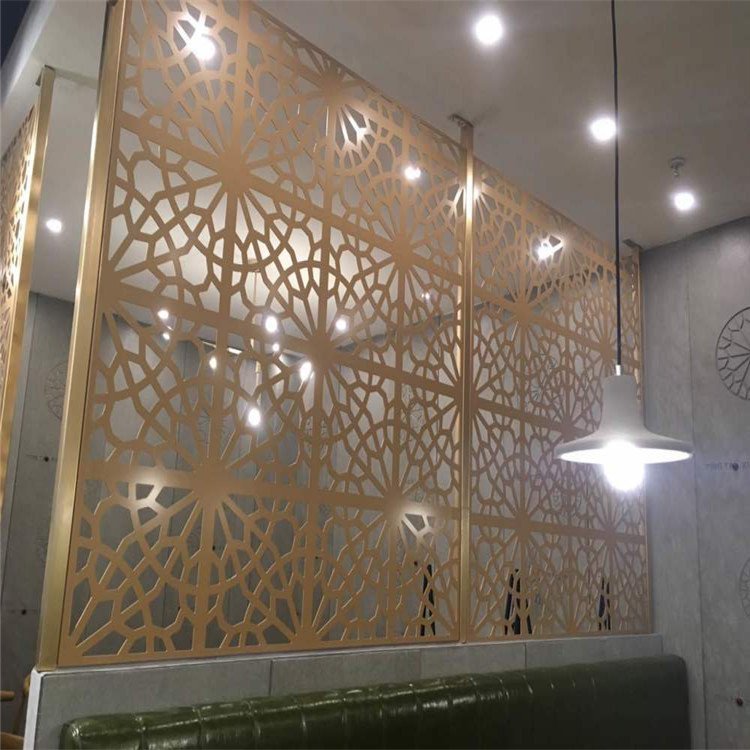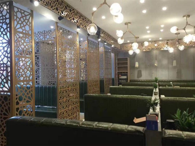 餐厅隔断雕花铝板,防火、防潮、不生锈,适用于:商场、 酒店 、公共场所,车站,地铁站,公司,集团,家居,娱乐场所,办公场所,等场合,天花吊顶、幕墙装饰、护栏装饰等。