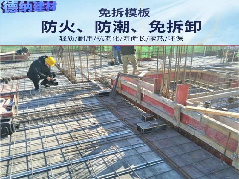 免拆模板有多种用途,可用于屋前圈梁施工过程中,浇筑前等。所需模板由免拆模板的墙和墙砌筑而成,然后在免拆模板砌筑的模板内浇筑混凝土,使其与墙连成一体。现在,工程建设中使用的现浇楼有很多,如顶楼、圈梁、基础、墙体、构造柱、地下隧道、水利工程、桥梁等。
