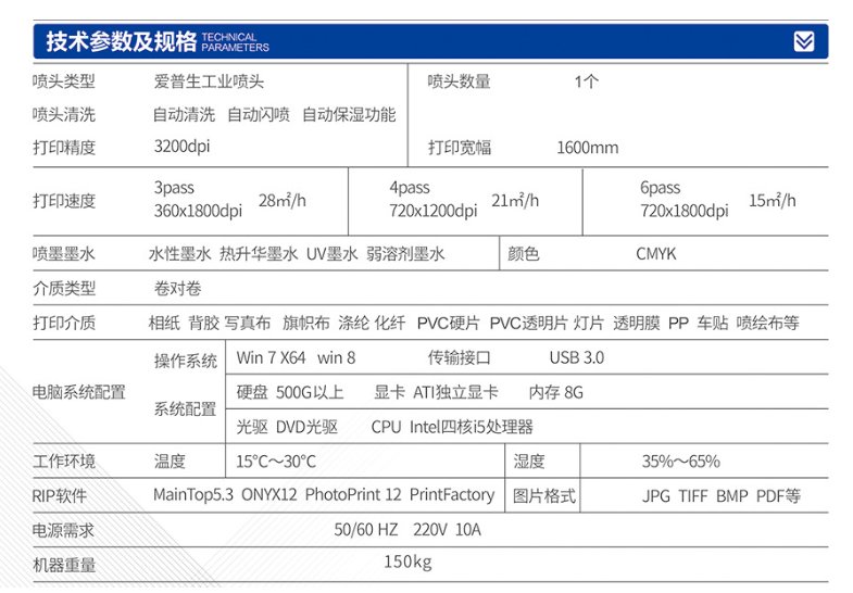 配备USB即插即用传输接口,速度高达480M/S,打印输出更简单。采用EPS3200工业喷头技术,3200个喷孔,实现3200DPI高精度打印品质输出。