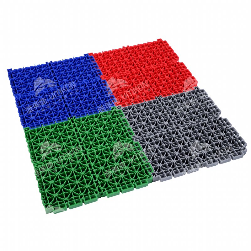 采用高分子热塑性弹性体环保材料,有效解决地板热胀冷缩问题的同时还具有稳定的表面摩擦,抗紫外线添加剂被加入到每一块地板中,能够保障地板在长期受日光照射中不褪色,悬浮式的结构设计加上坚固的加强型支撑脚结构,创造好的垂直的减震效果,防滑的表面可有效防止运动损伤,良好的球回弹性能和球速保证了地板好的运动性能,它可用于铺装理想的高性能篮球场、网球场、五人足球场、轮滑球场、乒乓球场以及排球、羽毛球等多功能球场。