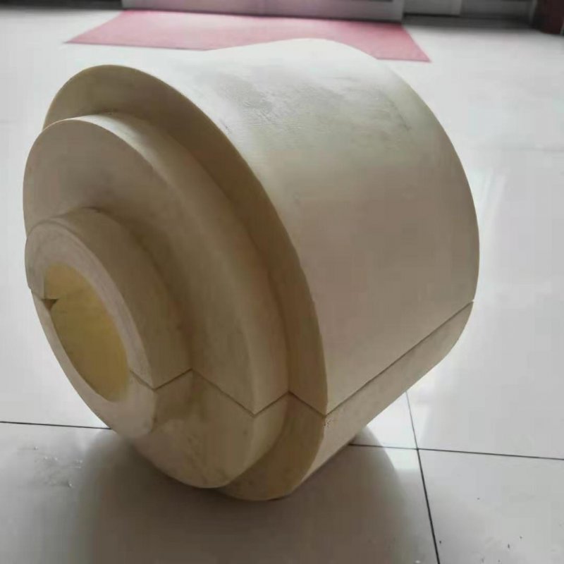 管道支撑部位的新型保冷材料制品,本产品适用于石油化工、冷藏、造船等行业设备中输送冷剂的低温管道,用作托架、吊架支撑部位的保冷绝热构件,具有、低导热、吸水率小、耐水解、不易燃、成型美观等特点。