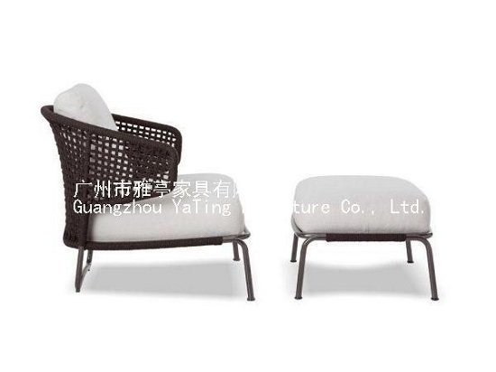 扶手采用特斯林编织绳编制而成,精致镂空,简洁大方,坚韧;广泛适用于花园、阳台、露台、室内休闲区等。雅亭户外提供OEM、ODM等定制加工服务,