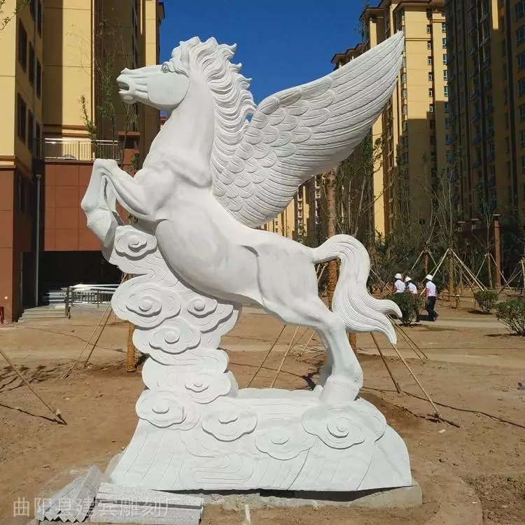 景区大理石奔跑骏马石雕马 石头飞马雕塑厂家