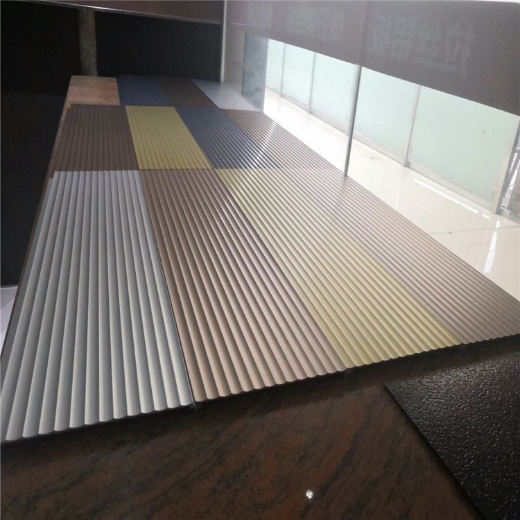 波浪形铝板,安装方便密拼结构安装,每件板边都有用于安装的卡槽,在墙体打膨胀螺丝用