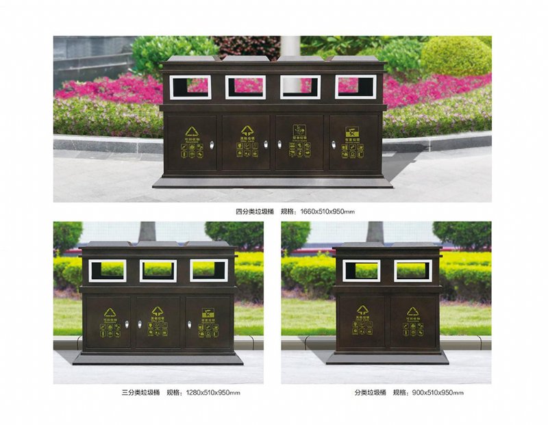 使用优质镀锌板,经激光切割分料--折弯--焊接成型。喷塑方面:用室外粉静电喷塑,经过200度高温,表面覆盖一层塑料保护层,限度延长了的使用寿命,使垃圾桶颜色持久不变,亮丽如新。喷塑粉末使用ISO9002质量体系认证的立邦塑粉,表面光滑易保洁,不脱色,不起泡。配件:配镀锌板内桶
