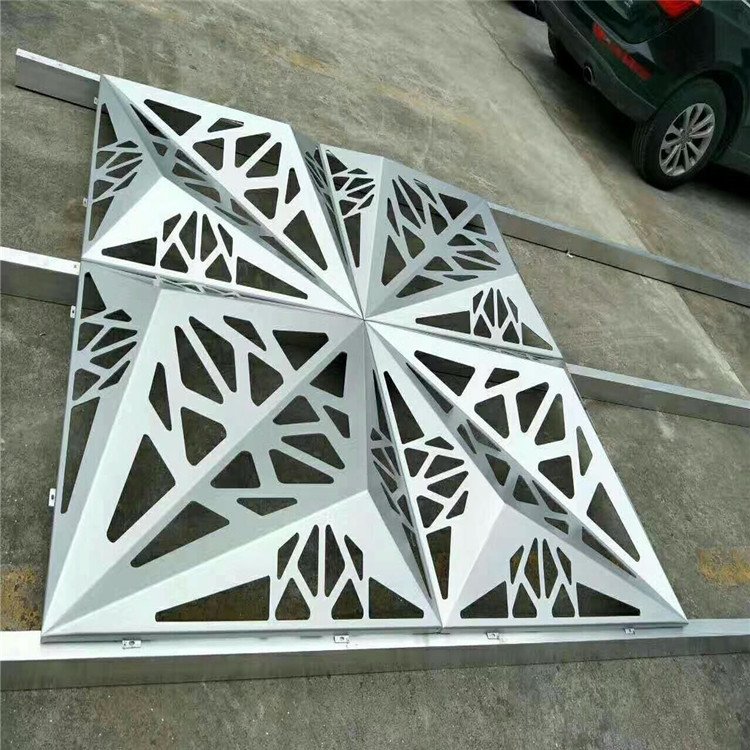 外墙造型镂空铝板,建筑外墙、门头装饰、机场,医院,车站,宾馆,酒店,商场,超市,停车场,电影院,咖啡厅,地铁站,歌剧院,咖啡厅,星级酒店等等公共场所镂空雕刻铝单板服务: 1、我司提供现场测量,设计,生产,提供整体解决方案,售后运输物流协商,安装技术咨询等等,让客户实现0无忧、一站式服务。镂空雕刻铝板构造:铝单板主要由面板、加强筋、挂耳(角码)等组成、
