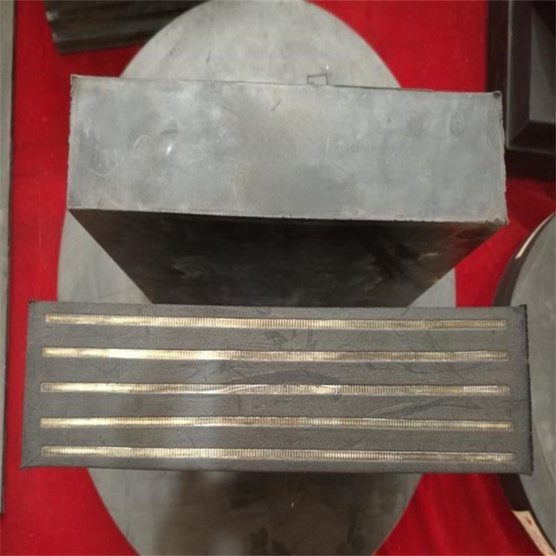 橡胶减震垫块 抗压系数高 使用年限长更换也方便,形状分为圆形和矩形,规格尺寸可根据梁板的大小随意定制。施工方便快捷!一)性能:本产品由多层橡胶片与薄钢板镶嵌、粘合压制而发。