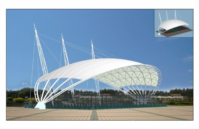 骨架膜:骨架膜,顾名思义,就是利用特殊的合金成型搭建膜结构建筑的大体框架,并用特殊膜材覆盖,这类膜建筑一般面积比较大,搭建框架成本高,但使用年限高,具有一定的抗风性和抗震性。