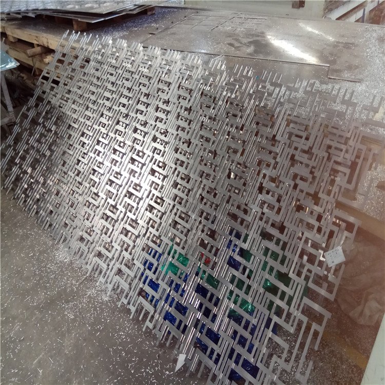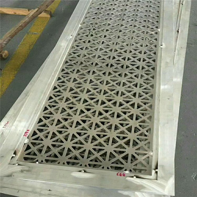 铝板雕花格栅,按不同的需求选用材料的厚度,有1.5、2.0、2.5、3.0,3.5,4.0,5.0MM,型号为3003、1100、5005,状态为H24,常规材料尺寸为1200x2400mm/1220×2440mm,也可按不同需求定做规格,构造主要由面板、边框组成。