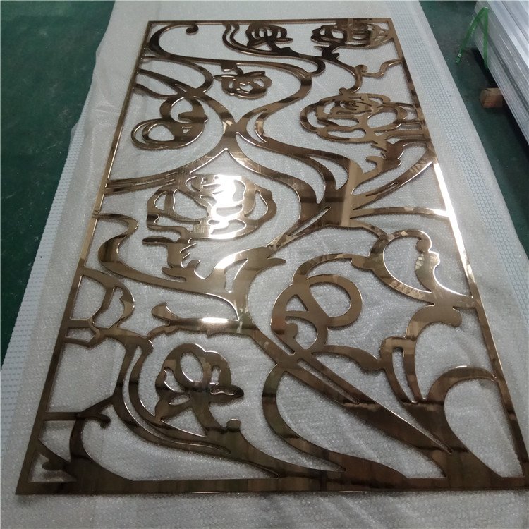 铝板雕花格栅,重量轻、立体感强、防水、防污、防火、防蚀、耐用不生锈、加工性能好、维护费用低、板面可加工任意花形,表面喷涂烤漆成漂亮颜色,在墙面形成美丽的花型图案,可通风透光夜间再辅以灯饰照射下可达到金碧辉煌如歌如梦般的装饰效果,更能具有髙效的吸影力。