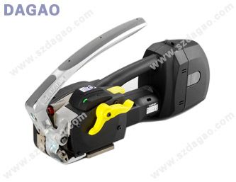 蓄电池做动力,驱动电机高速工作,将电机转动转换为摩擦片的高频振动,利用高频振动带动PET带发热,从而实现PET打包带的粘接。