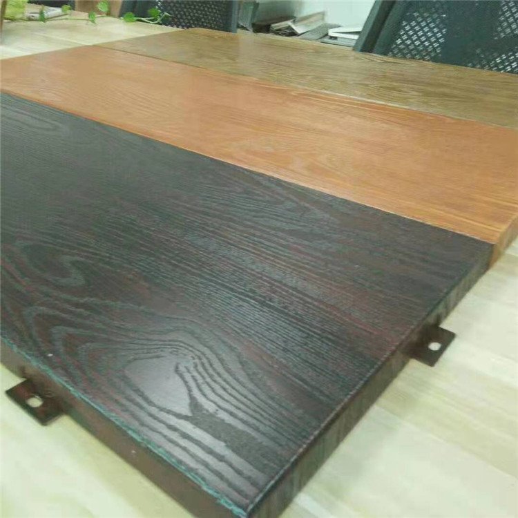 铝板,材质重量轻装饰给建筑带来负荷小,具备有防火 防潮 不生锈的性能,木色纹路清晰,有光滑平面纹路,3D凹凸纹路,腐蚀凹凸纹路,不同工艺不同造价,可以按需求定做颜色,红、黄、黑、白、蓝、紫、等,墙面户外装饰不受紫外线、湿度、气温和天气腐蚀,不容易褪色;板体轻巧、安装结构简便,更具有良好的抗弯曲强度及优良的抗风压性能。