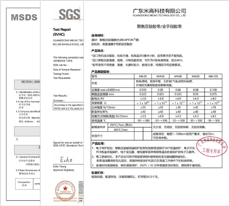 米高科技在上世纪90年代初就自主研发、生产:聚酰亚胺PI胶带、PET