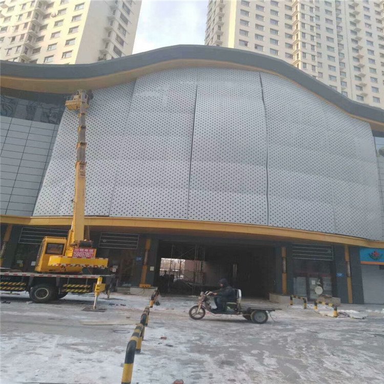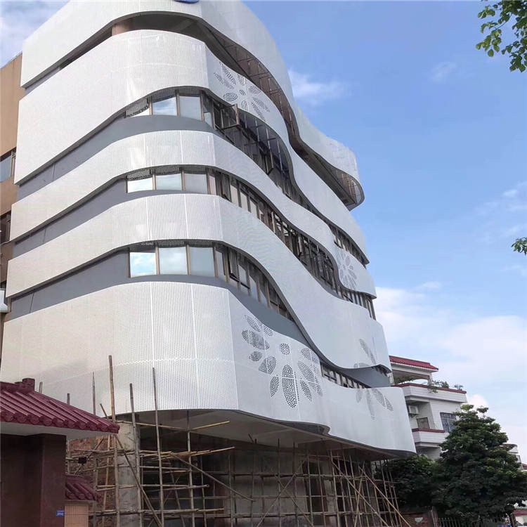 门头弧形铝板,重量轻、立体感强、防水、防污、防火、防蚀、耐用不生锈、加工性能好、维护费用低、板面可加工成冲孔、雕花、镂空的各种艺术花型弧形及异形板,装饰更具有时尚的栖息,并且可以使建筑物更具高贵典雅的风格。