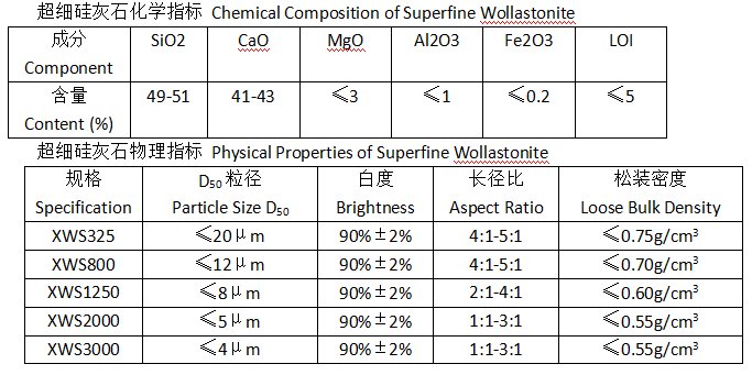 超细硅灰石(XWS系列) Superfine Wollastonite (XWS Series)
