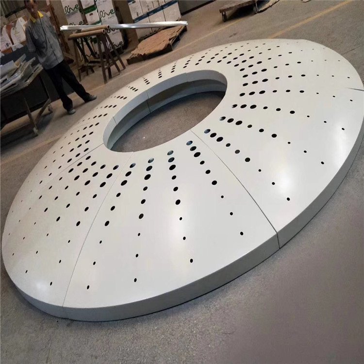 铝板,是建筑吊顶装饰圆形材料,材质以铝板为基材加工,产品主要为打造建筑装饰风格定制,建筑的天花装饰凸显时尚高雅更显企业的实力,天花装饰环保耐用,表面的颜色是经过高温烤漆上去的,装饰不容易粘黏灰尘,自洁性能强,在雨水的冲洗后又可以保持光洁如新。