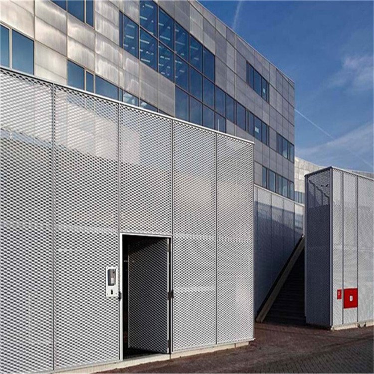 合金板材,网孔经拉伸、扩张、冲压成型,网格大小都可以根据客户需求订做,网孔板装饰重量轻,不会给建筑任何负荷,各种网孔形状都能装饰出一座美丽的建筑。