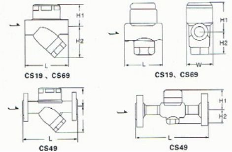 CS19H-16(25,40)C热动力式(圆盘式)(Y型)疏水阀主要外型连接尺寸