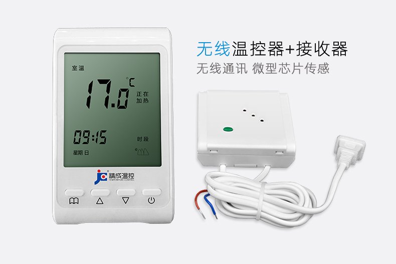 电源,通过温控器与无线接收控制器里的无线模块通讯,来达到控制室温的效果.