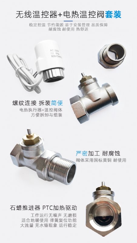 执行器 温控器 电动温控阀套装,稳定控温,节约能源 易于安装管理,耐腐蚀,耐使用,热舒适。