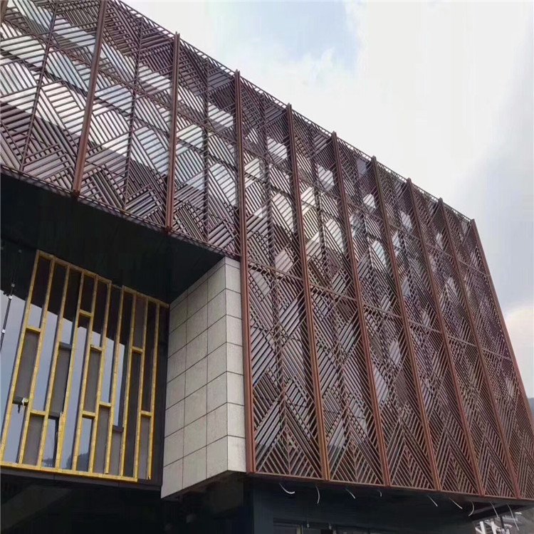 金属仿古装饰花格,选用的铝方管由10*10mm,15*15mm,20*20mm,25*25mm,至200*200mm,穿透性焊接的格栅厚度要2.0mm以上,使材料在焊接过程后不会变形,焊接处经人工打磨好后和没有焊接的地方同样平整,表面做好颜色看不出焊接处的痕迹,效果和古建筑一样空间中的整体设计风格,带有浓浓的中国风。