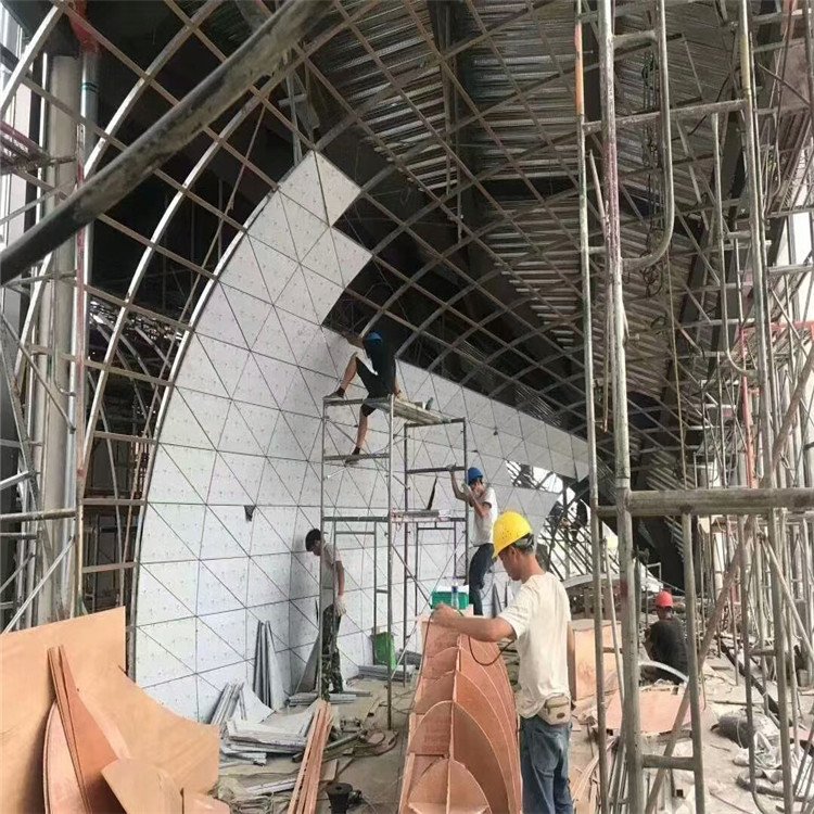 镀锌钢管上面,依次拼接安装形成一个牢固美观的铝板整体墙,产品主要为打造建筑装饰风格定制,建筑的外观包装凸显时尚高雅更显美观。