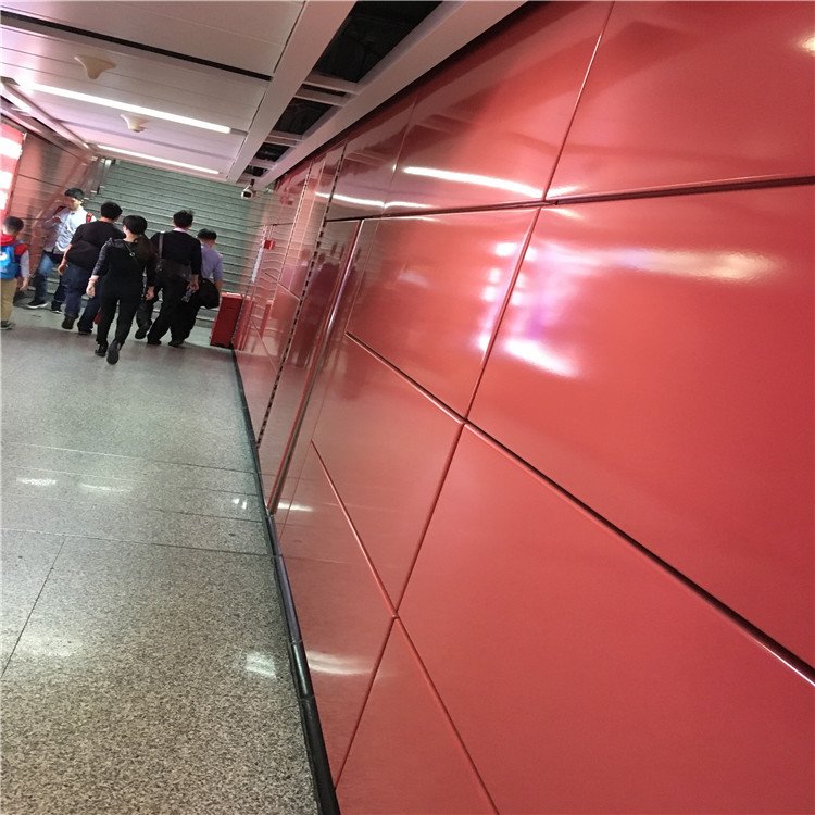 隧道装饰烤瓷铝板,在地铁站、隧道墙面使用根据各个地方的环境气候选择基材厚度, 2.0mm、2.5mm、3.0mm、3.5mm、4.0mm、4.5mm、5.0mm 更多厚度详情咨询客服,板的见光面常规尺寸是,1200x2400mm,1220x2440mm,尺寸都可以按场地分布而定做,大板的背面每隔1.2米就附加一根加强筋,有注加强板面的立体效果保持装饰长久不变形。