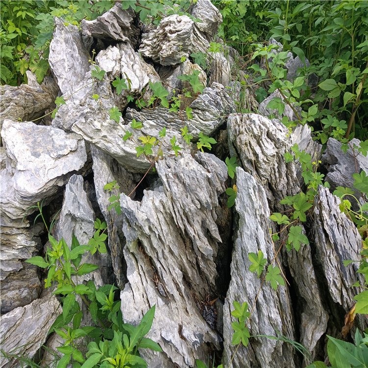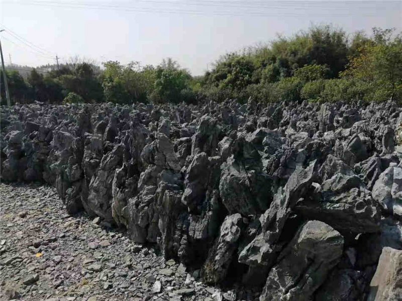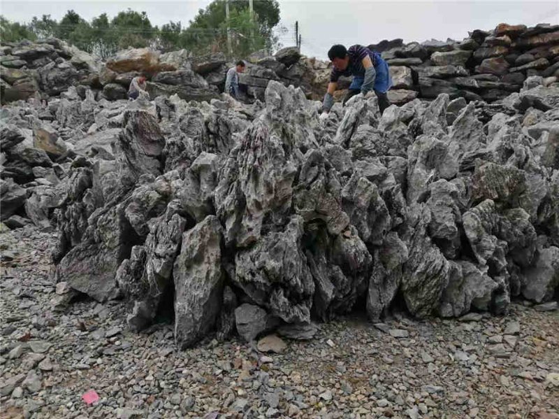 英石质地细腻、纹理奇特,由于在大自然中经受长期的风化淋滤作用,致使其局部遭受侵蚀溶解,而形成充满沟、缝、孔、洞的奇形怪状,并具有“皱、透”二个特点。英石大的可单独成景,小的可以制作
