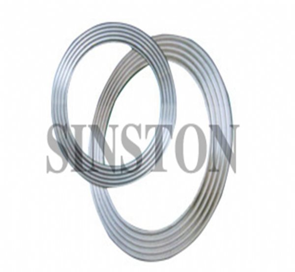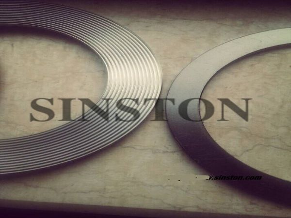 不锈钢平垫片的二面加工成同心的沟槽,根据不同的介质,可 选择柔性石墨、PTFE、无