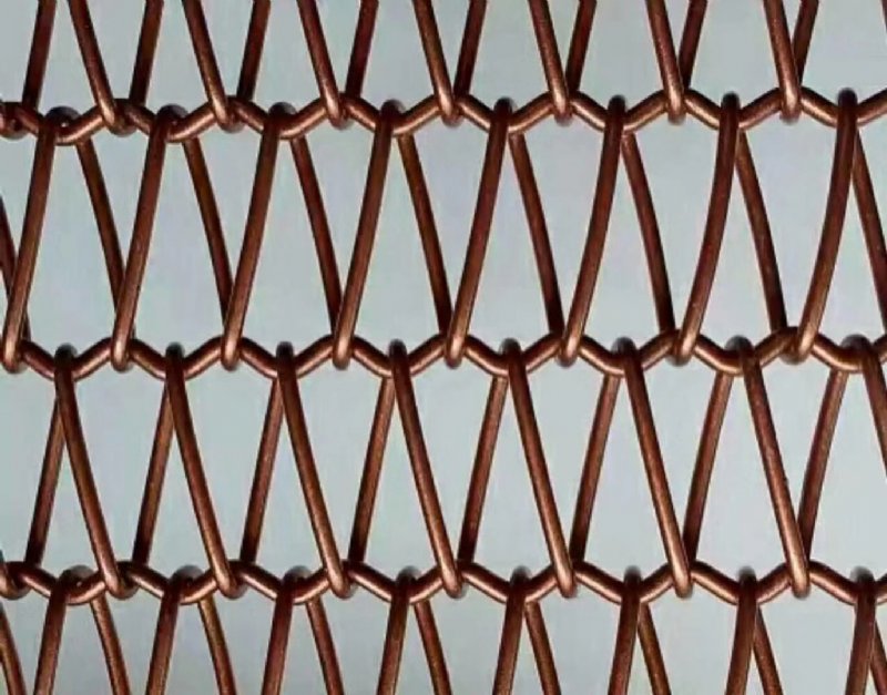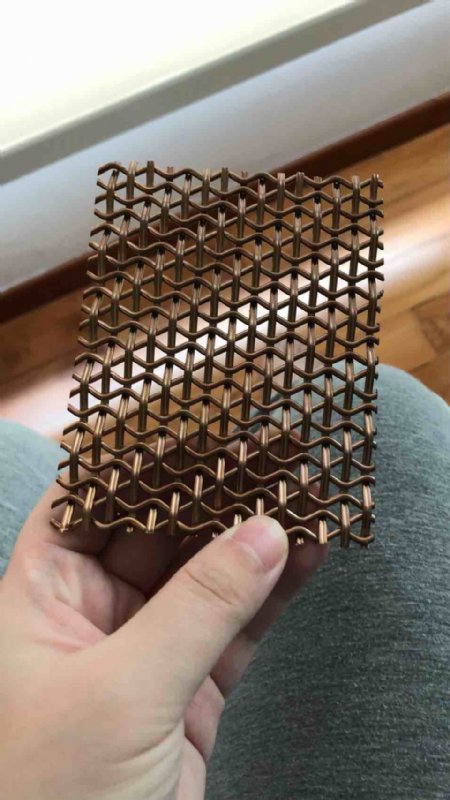 不锈钢丝等金属材料螺旋编织而成,网帘表面可以是金属本来的颜色,也可以处理成古铜,金色等其他金属色。可用于高级建筑的窗帘,豪华客厅的