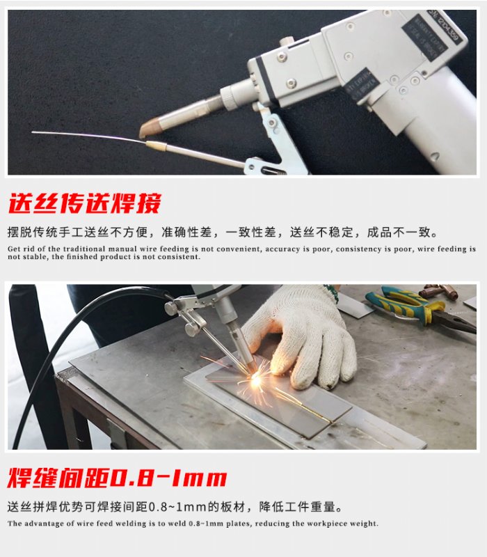 3、手持激光焊接速度快,比传统焊接快5-10倍,一台机器一年可以省2个焊工