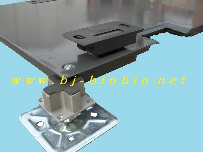 螺钉组成。地板放置在带有防震垫的支座上,螺钉穿过地板周围的角锁孔直接连接在支座上,支座为镀锌及铸铝合金结构,高度可调并能自锁。