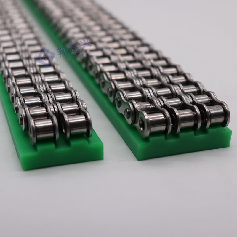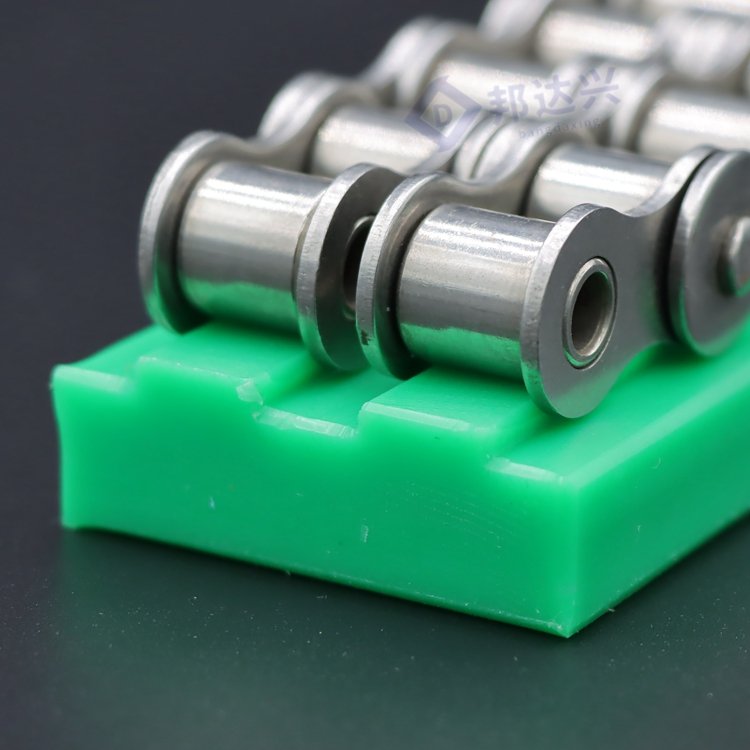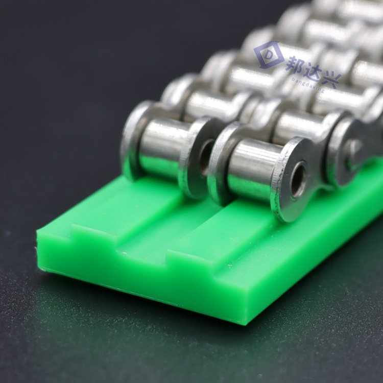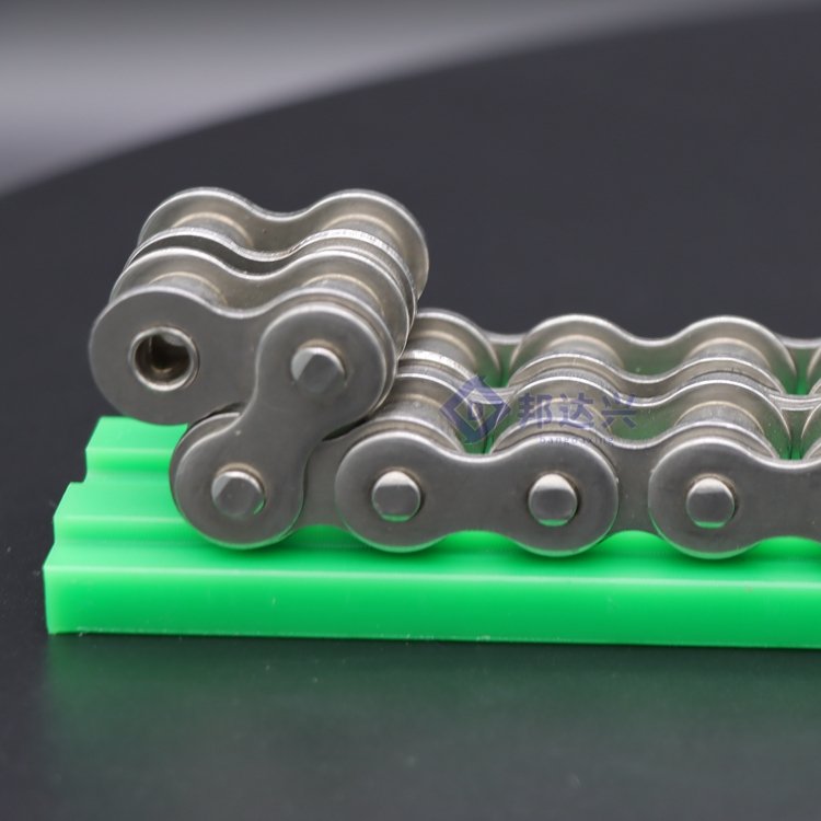 3、抗冲击---抗冲击强度达到150KJ/㎡,高分子聚乙烯链条导轨厂家,不破裂。优良的环境应力开裂性能,是普通聚乙烯的200倍。优良的耐低温性能,即使在-176℃时也不脆裂。