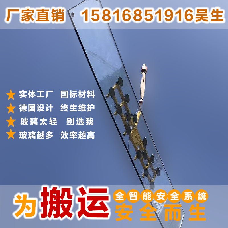 1.吸盘及关节手柄可拆卸组合,能满足从几十公斤到数千公斤不同规格的玻璃的吸吊。