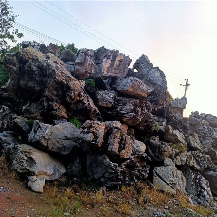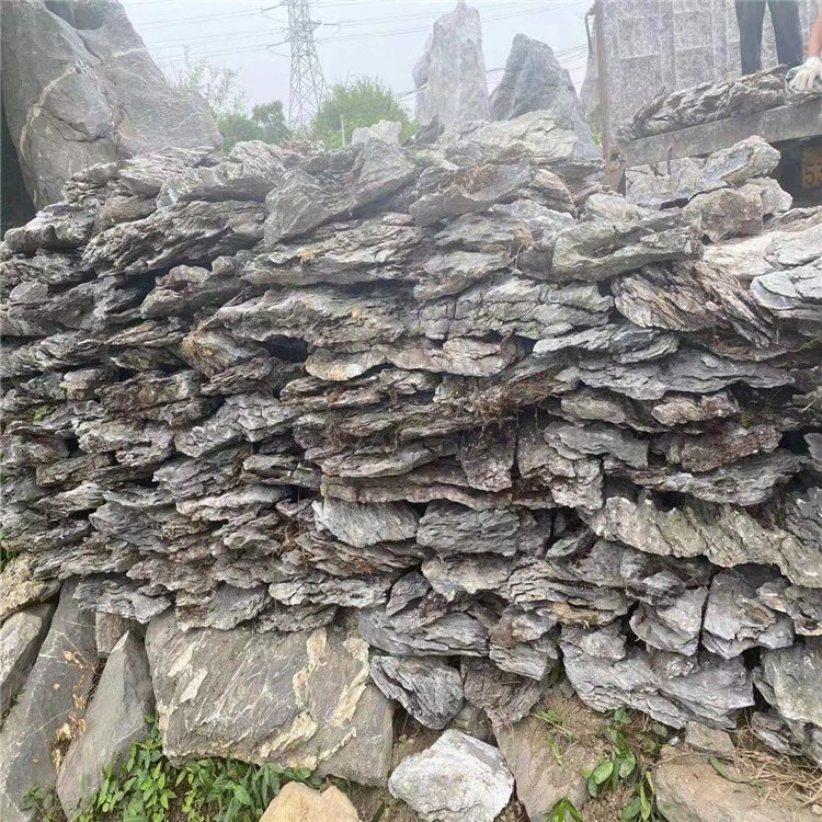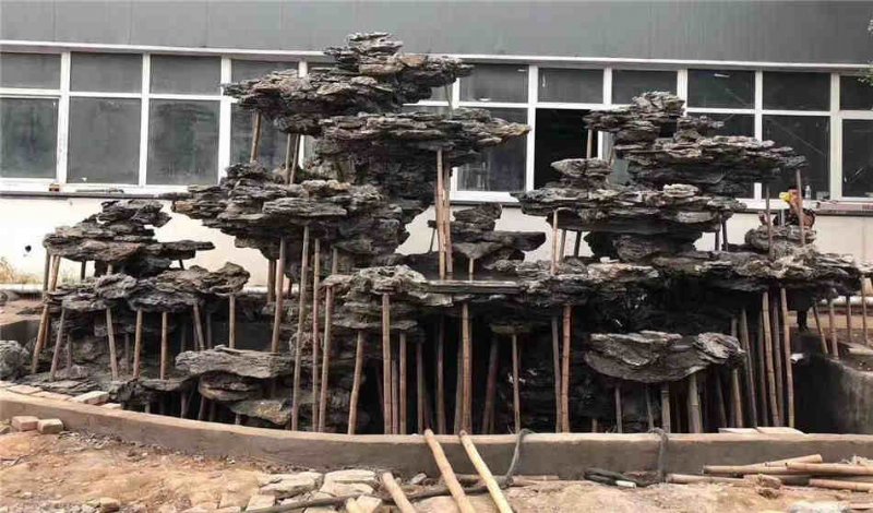 英石叠石一般用于祥云式叠山(英石叠山),尺寸一般在2O~100公分长,重约30~100斤不等,形状呈薄片状,以侧面多纹路的为贵,有直线横纹产量少,因为横纹的叠石做的假山层次感强,线条优美高雅。