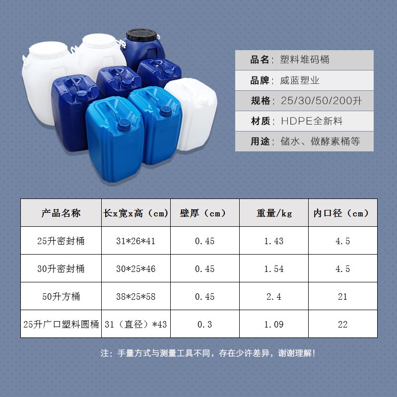 塑料桶方桶闭口桶堆码桶化工桶耐酸碱桶25L 30L  50L 200升 1000IBC吨桶 全新料