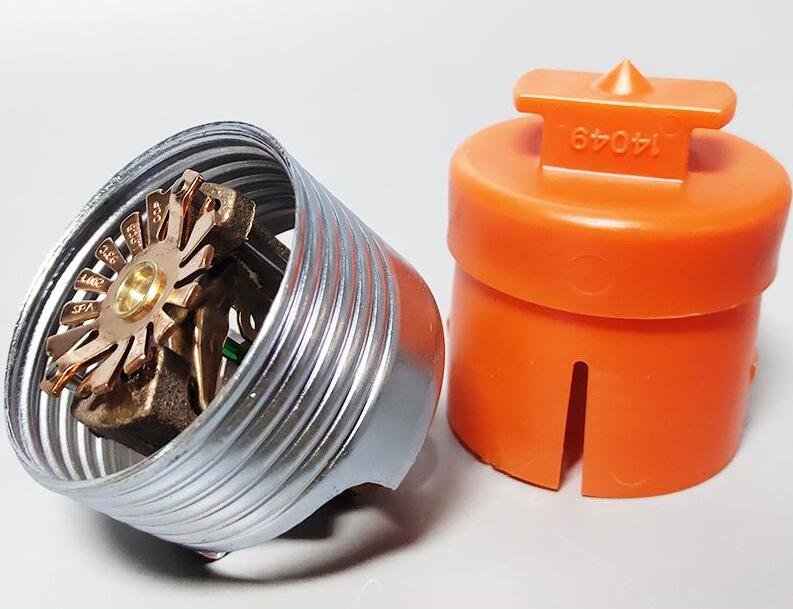 洒水喷头是一种用于平坦吊顶内暗管系统中的 小型玻璃泡(3Mm)洒水喷头。在视觉吊顶齐平安装的浅轮廓盖板可以將喷头掩盖。为了符合设计要求和现场美观,喷头盖板可以有多种颜色喷涂来满足业主 个性要求。“扣压”和“旋出”的技术设计便于施工的安接,并旦能满足在垂直方向的调节不超过12.mm伺距而“旋出”的功能设计可以避免盖板的不正常脱落。当保护区吊顶部分区域需要更换时,可先拆除喷头盖 板,待吊顶更换后重新“扣压”上盖板。如此不但可以使洒水头在拆除