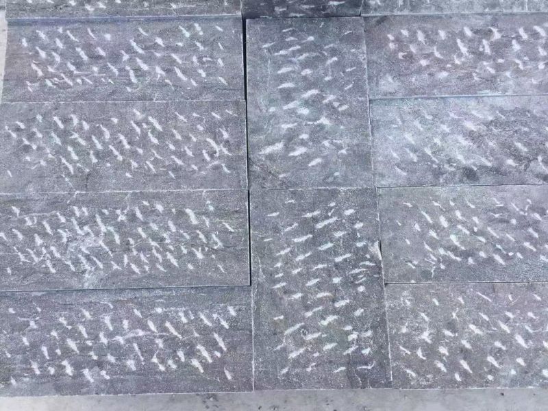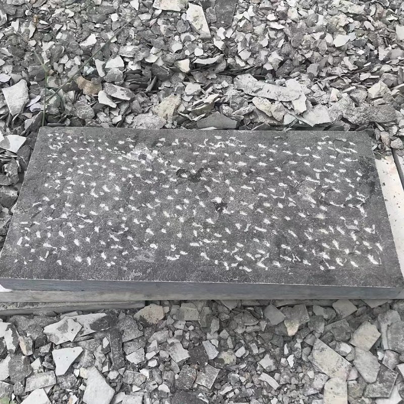 青石板是常用的仿古人工加工方式,工人从山上手工开采出来青石石料,然后由老石匠用锤子和錾子手工凿出来点状,原来的石材手工开采表面不平整,所以必须一点点的凿平一錾錾的加工,凿出如同菠萝表面的形状,就是我们经常说的满天星加工,在我们山区的农村地基以上的