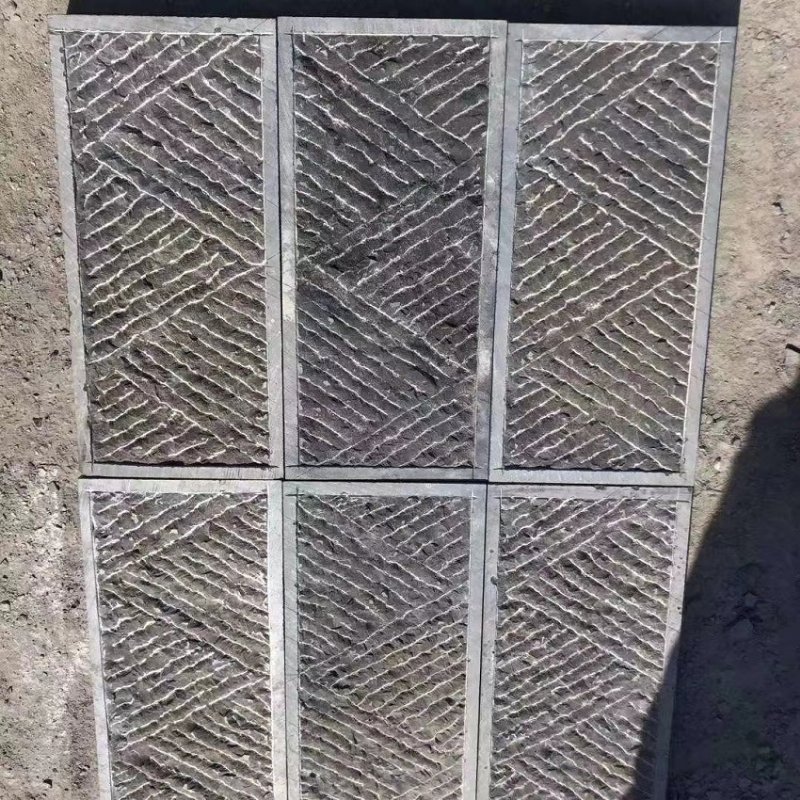 花岗岩石材的一种加工方法下的产物,一般将天然青石锯成板材后,对板材表面经过初磨,初磨后放在固定架上再对表面进行机器斧凿而成。采用乙炔、氧气、