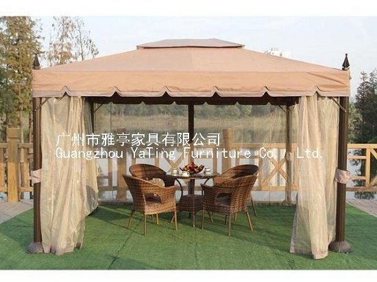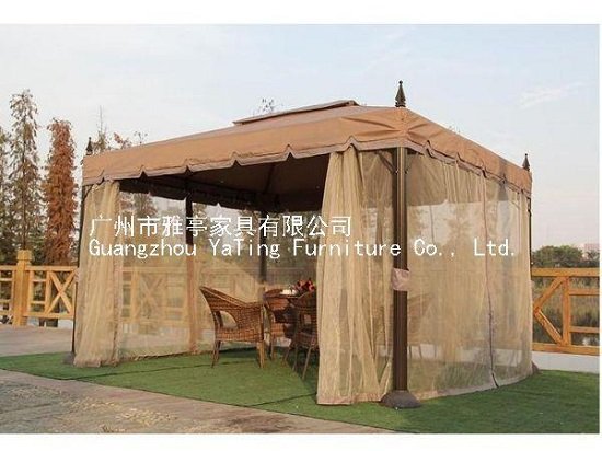 产品性能:广州雅亭厂家采用加厚加粗铝合金支架,高温静电喷粉,9根加厚伞骨,有效抵御强风;加厚涤纶布,双垂边设计,防水防晒,长期置于户外也不易老化;可另外搭配围布,夏季放下纱帘防蚊虫,冬季放下围布防风御寒,广泛适用于户外、别墅、花园、露台、酒店、商业街、餐饮店等户外休闲场所。