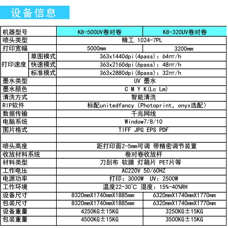 机器型号;K8-500UV卷对卷 K8-320卷对卷