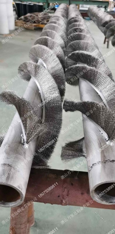 不锈钢钢丝,v字型缠绕在辊体上,运行中灰尘通过刷毛王俩边分散,刷毛采用耐磨性细