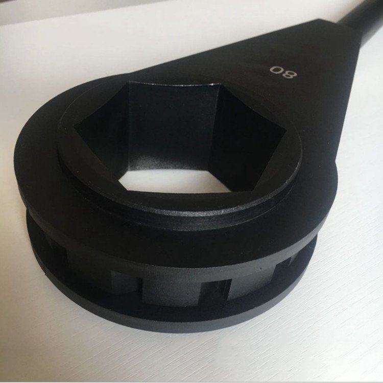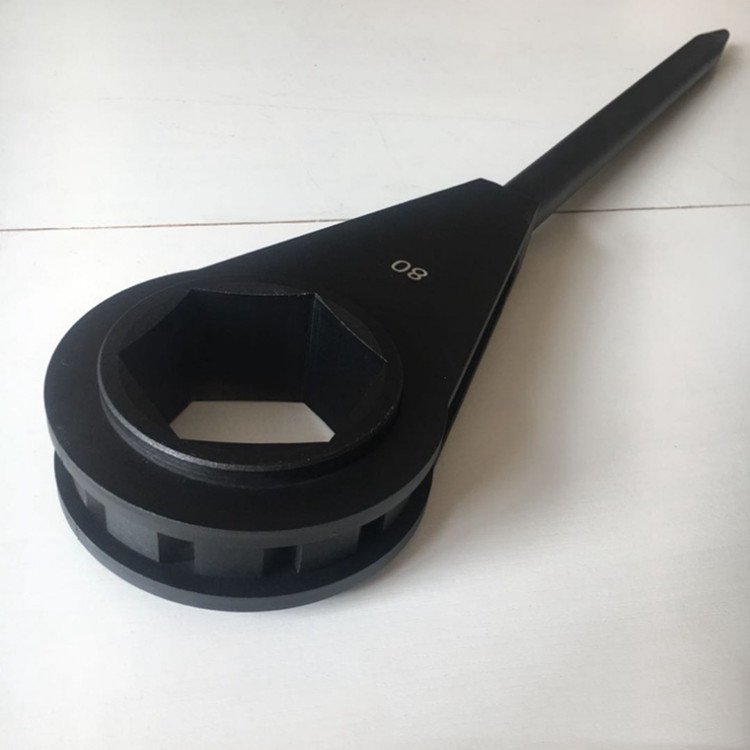 扳手。是由不同规格尺寸的主梅花套和从梅花套通过铰接键的阴键和阳键咬合的方式连接的。由于一个梅花套具有两个规格的梅花形通孔,使它可以用于两种规格螺丝的松紧,从而扩大了使用范围,节省了原材料和工时费用。活动扳柄可以方便地调整扳手使用角度。一用于旋转置于狭窄或难于接近的位置的