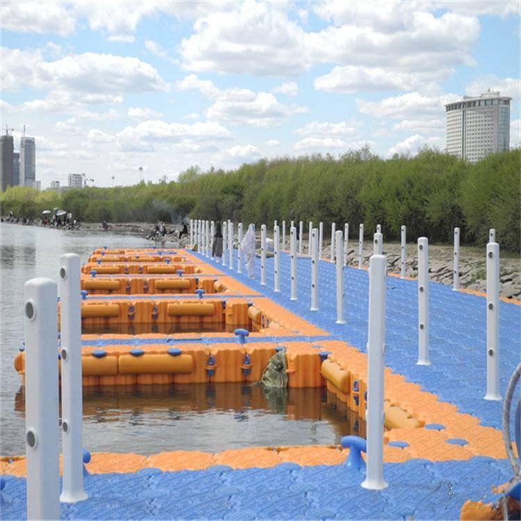 游艇码头,具有让游艇停泊,清洗,维修和游人上下船等功能。以往人们概念中的游艇码头多为钢筋水泥结构,但因为水位经常变化,此种结构的游艇码头往往不能满足要求,浮动码头可以适应不同的水位,始终与水面保持固定的距离,受到越来越多使用者的青睐。设计人员会参考船型,水深,潮汐,水流情况和风浪大小等影响因素,设计出理想的浮动游艇码头,码头表面有防滑设计,并且可以根据需要铺设木板,在保证质量和安全的同时,是经济的建筑码头方式。不过,组合式模块即浮筒所能建造的只是中小型游艇码头,大型的如货轮码头之类的需要其它具有高承载力的材料来建。浮动码头的主体是浮筒。浮筒对于中小型游艇码头来说,浮力以及承载力都以足够,因为就算单层游艇码头不能满足还可以加为双层浮筒的游艇码头,两侧用铁框固定住,大大增加了游艇码头的浮力,保证了稳定性和安全性。利用浮筒为主体的浮动码头可以根据船体的尺寸,设计不同的码头。游艇码头可以根据需要铺设木板,这会一定程度上延长码头的使用寿命。