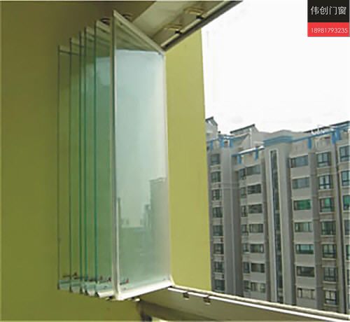 ,相应的五金配件联合大截面铝合金构制成,它的设计,使每扇窗都既能左右移动,又能90`开启逐块排列,而且整个阳台窗能根据用户的需求全面敞开,也可全部封闭,充分保留了阳台应有的特性和功能。它能非常有效地挡风遮雨,隔断尘埃和噪音,合理的结构使窗都能向内开启,不必把身体探出外面擦窗,清洗十分安全、简单。
